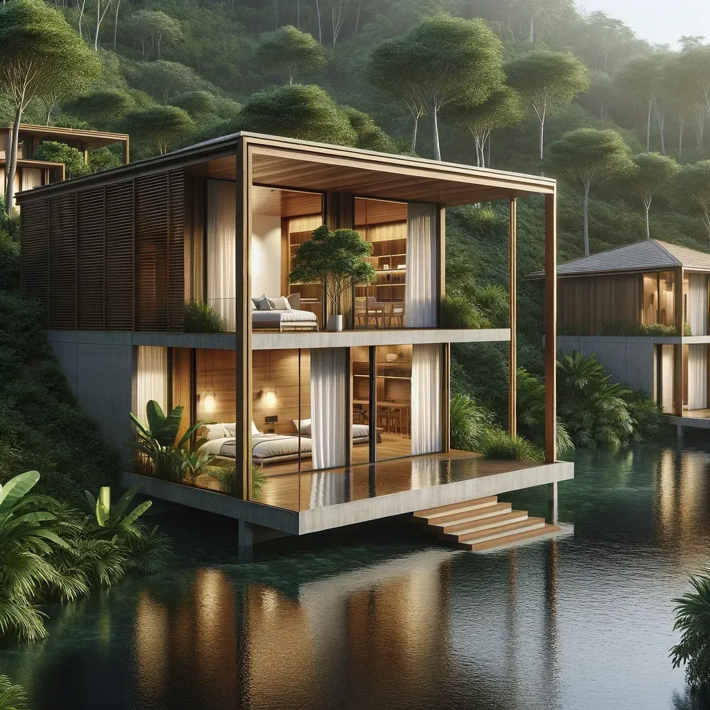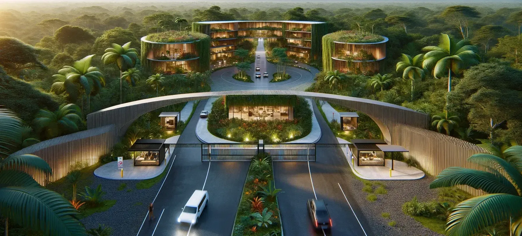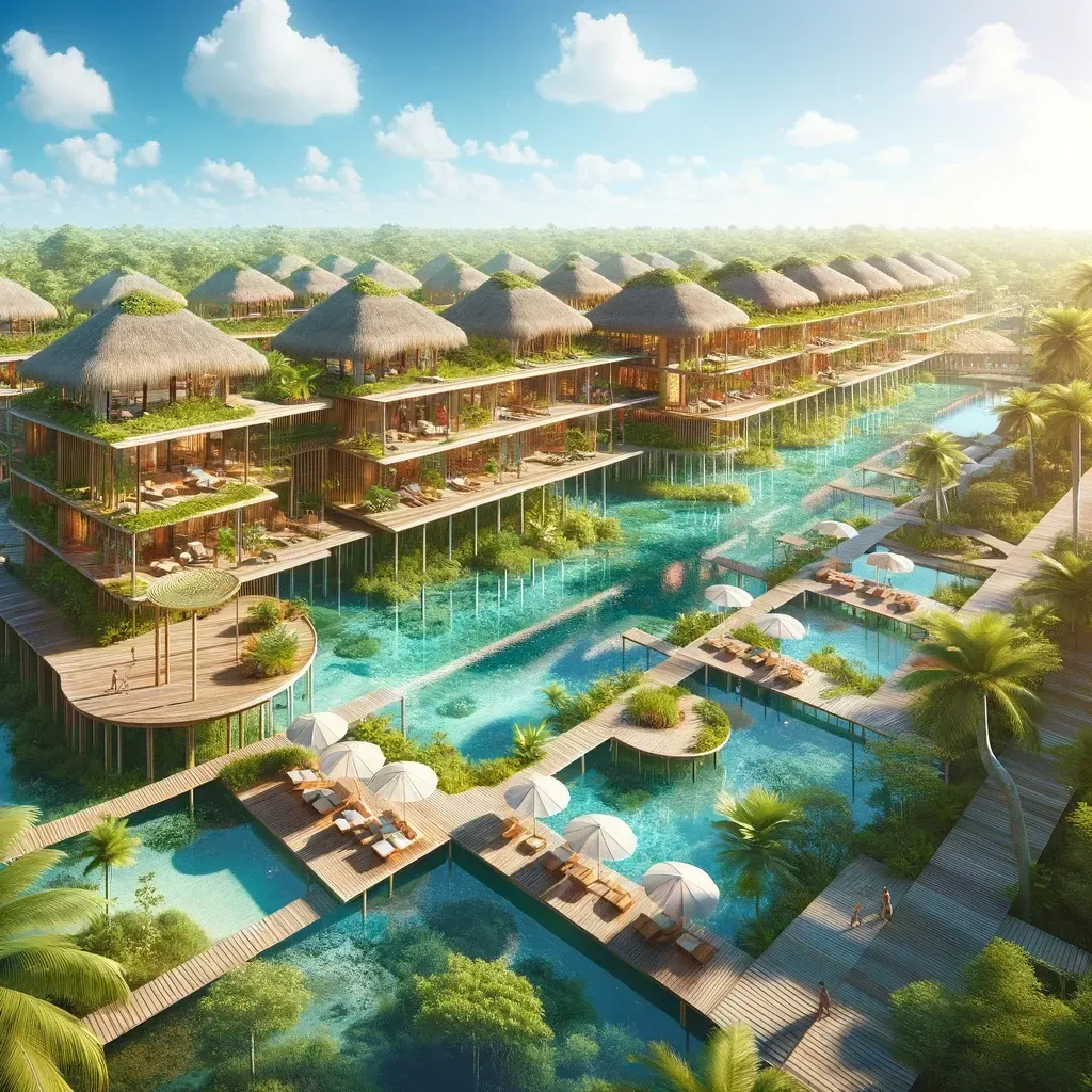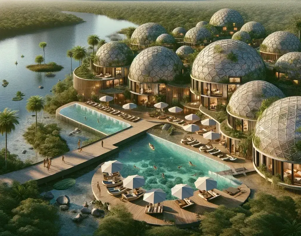Arquitectura Inspirada en la Naturaleza: Las estructuras se diseñarán para fluir con el paisaje, utilizando formas orgánicas, materiales naturales y tecnologías sostenibles que reflejen los principios de la bio-arquitectura.